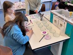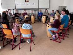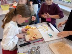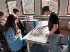Am 04. und 05.11.2025 öffneten sich, wie mittlerweile schon seit vielen Jahren, die Klassen- und Fachsäle für die Ereignistage. Einblick nehmen konnten die Schülerinnen und Schülern in die verschiedensten neuen Fächer, sowie in die Wahlpflichtfächer Hauswirtschaft und Soziales, Technik und Naturwissenschaften und Französisch, wobei alle Grundschüler auch selbst gefordert waren: Schnippeln für einen gesunden Obstsalat, Vorstellungsrunde und Memoryspiel auf Englisch, verschiedene Experimente im Fach Naturwissenschaft, digitale Knobelaufgaben im Computerbereich, Rhythmusspiele mit dem Körper und an Instrumenten im Fach Musik, selbst gefertigte Lesezeichen in der Schulbibliothek, oder spielerische Übungen im Sport in der neu sanierten Turnhalle.